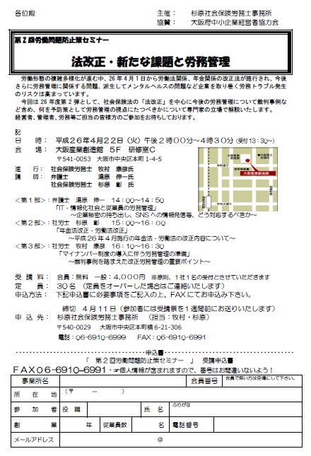 申込先:杉原社会保険労務士事務所 (担当:牧村・杉原)